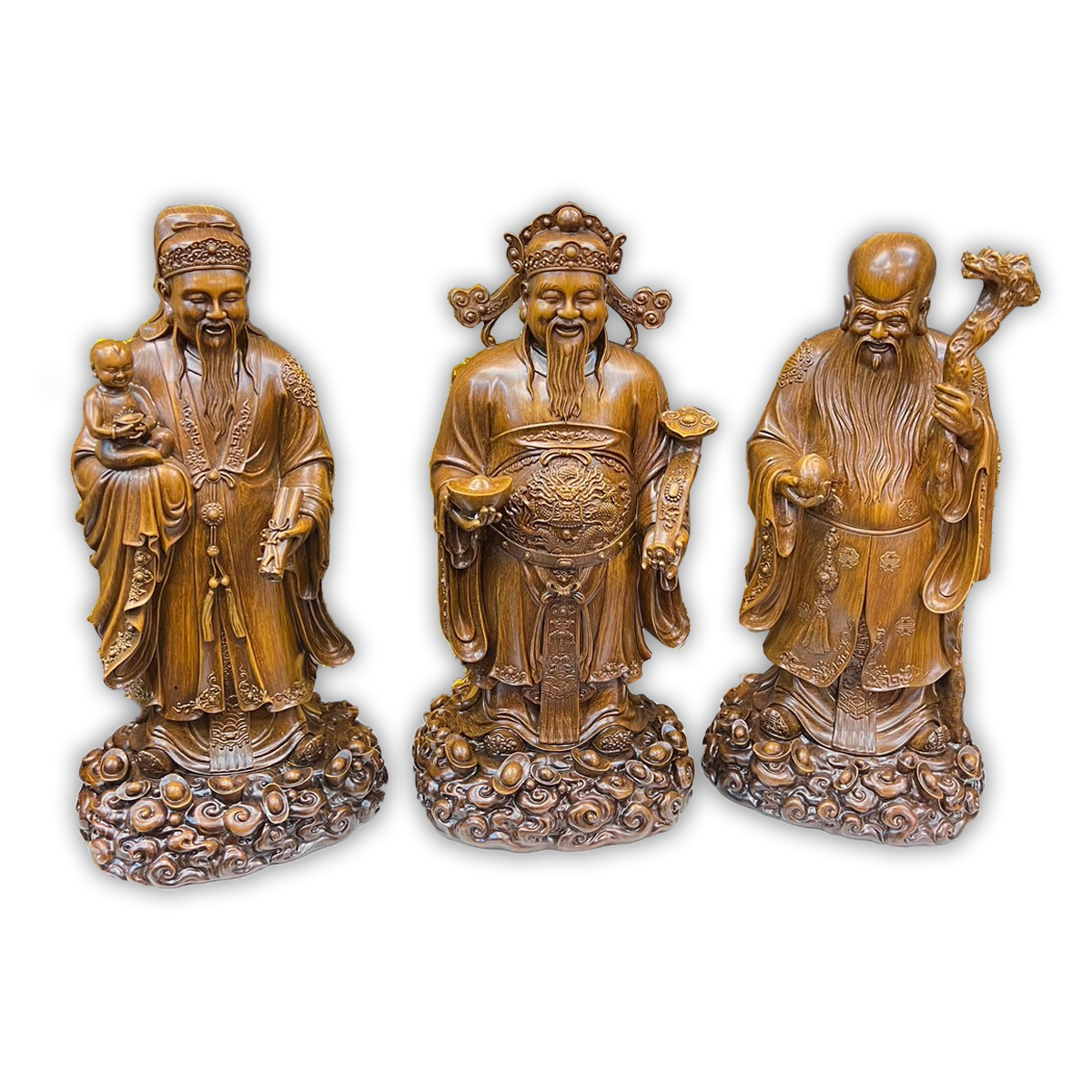 เทพเจ้า ฮกลกซิ่ว 3 องค์ งานเพ้นท์สีไม้